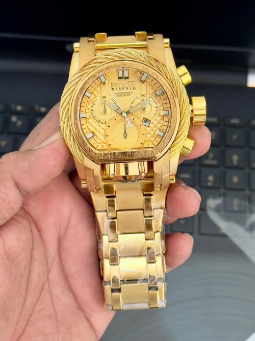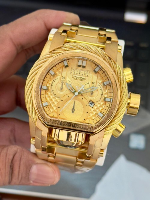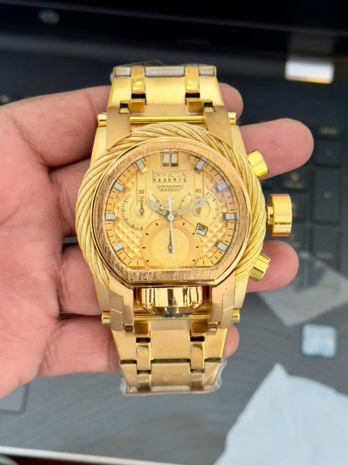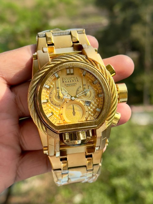 _This golden Invicta watch stands out like a bold statement piece that instantly commands attention._