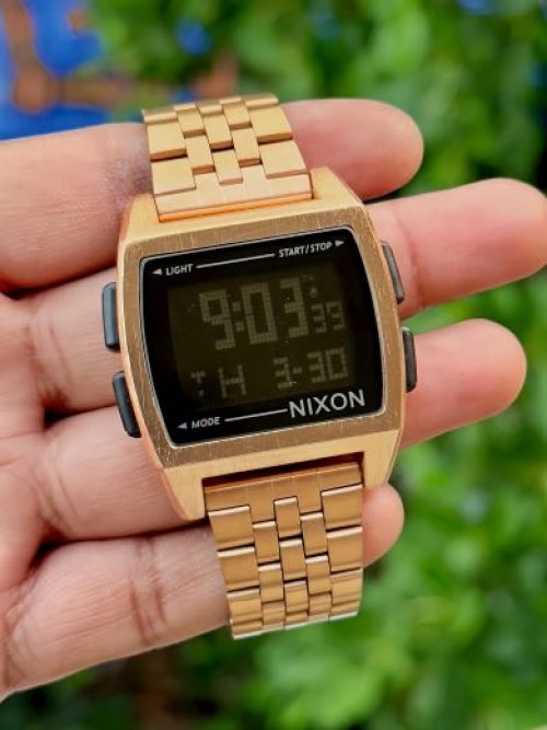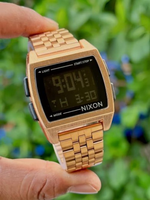 _This digital watch stands out with its bold retro design, sleek metal strap, and modern functionality._